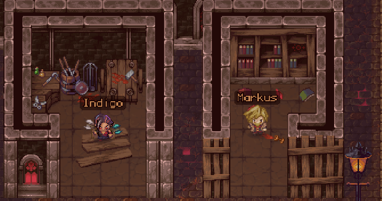 Players' adventures are heavily influenced by lighting. As players explore, they will find some areas are more well lit than others. Low light conditions amplify the danger, making both players and enemies deal more damage. Torches provide much needed light, mitigating some of the risks associated with darkness, but only for the torch bearer. Torches can be crafted at a Crafting Bench or purchased from the Armory shop.