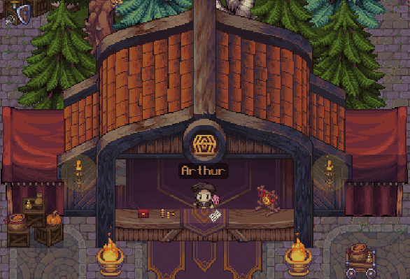 Banks are located in city centers + settlements and can be used to store items & equipment. Items stored in your bank will not be lost on death. Click on Arthur to open the bank.
